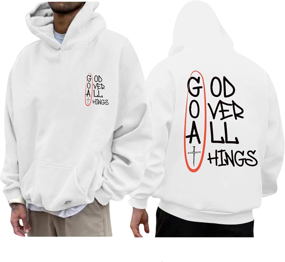 Best Gifts: Men's Fashion Hoodies & Sweatshirts End with God Over All Things Graphic Printed Hoodies Are The Perfect Gifts for Believers, Christians And Pastors, Also Is A Great Gifts for Dad, Husband, Boyfriend, Grandpa, Son, Brother, or Friend on Father's Day, Christmas, Anniversary, Birthday or Other Special Occasions