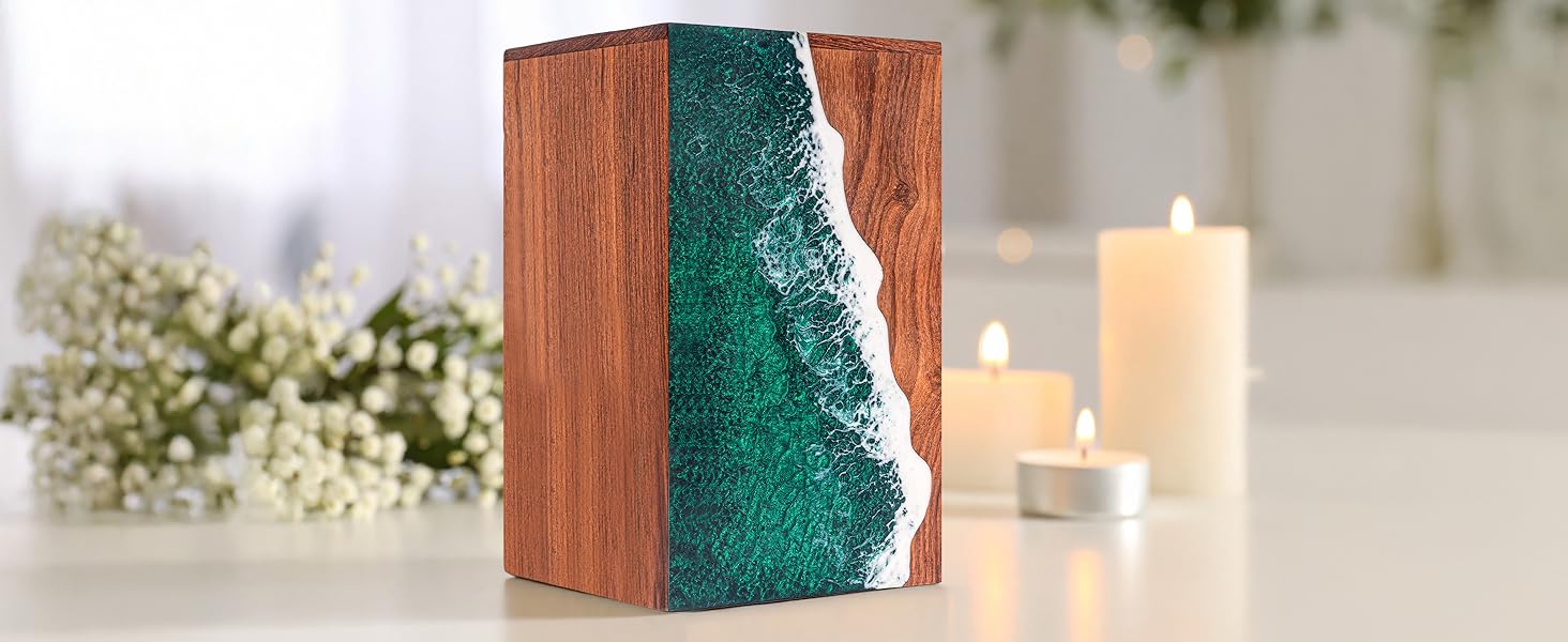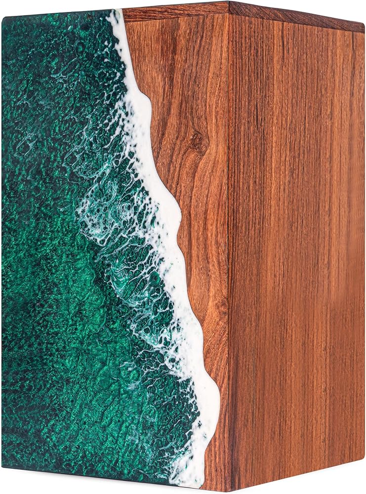GREEN OCEAN THEME DESIGN – Inspired by calming ocean waves, the green ocean cremation urn motif symbolizes peace, eternity, and remembrance, making it a meaningful memorial urn.