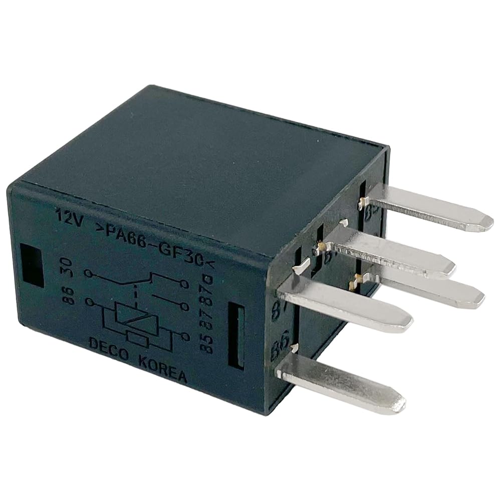 Specifications: Operates at 12 volts DC, with a 30-amp switching capacity. Standard 5-pin (SPDT) configuration ensures compatibility with many automotive applications.