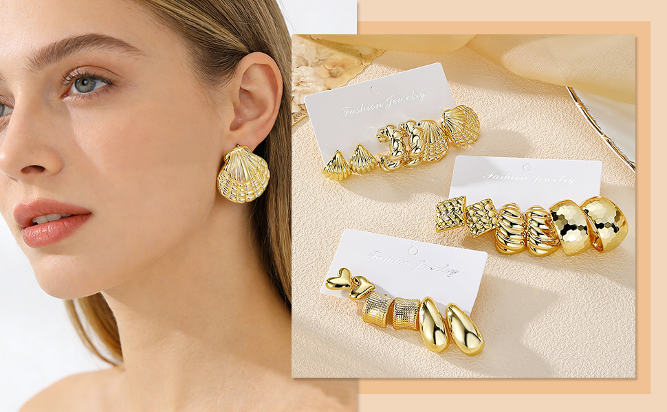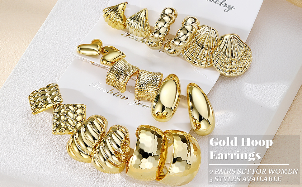 - 18 pairs of gold hoop earrings in one set, featuring chunky, twisted, and teardrop styles to match every outfit