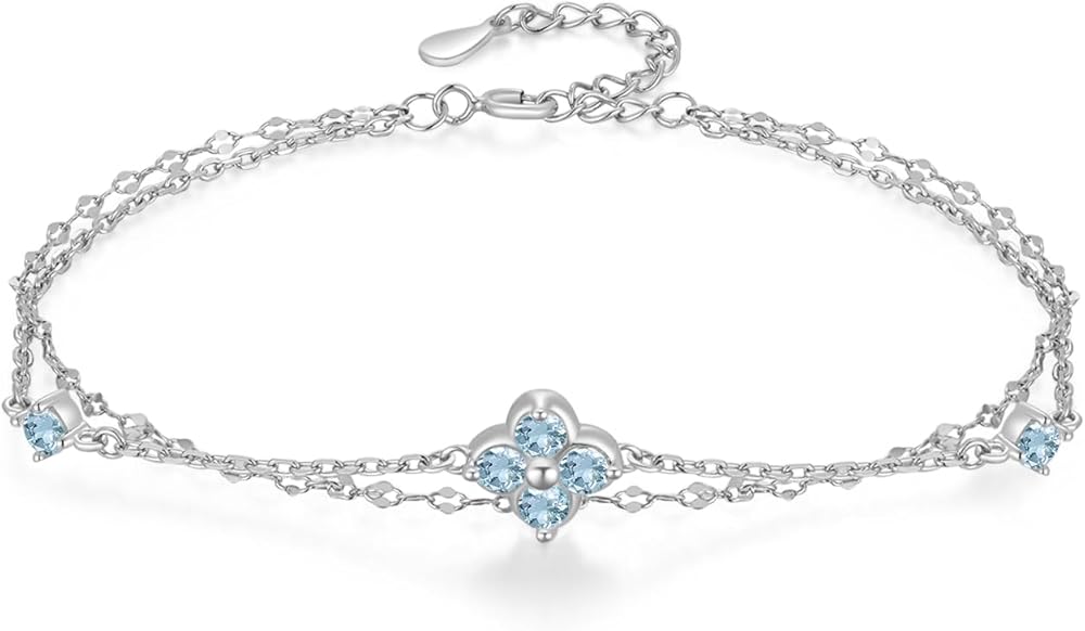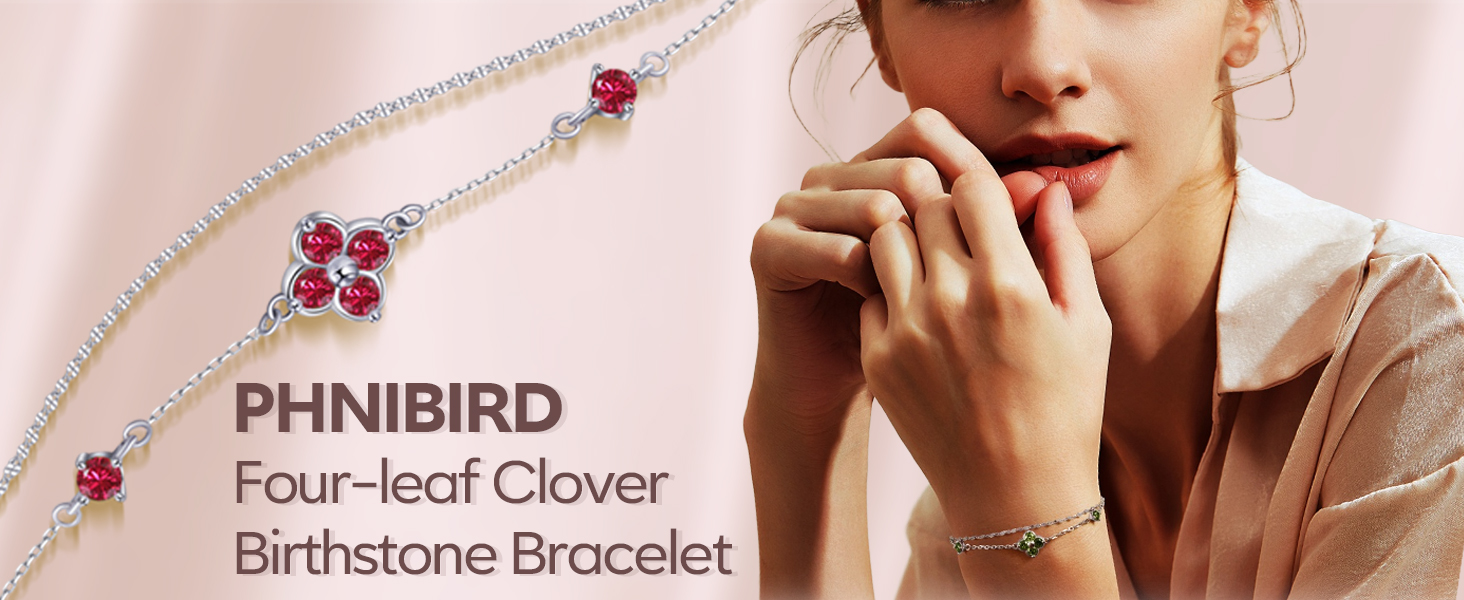 Four-leaf Clover: This elegant silver bracelet features a lucky four-leaf clover, symbolizing good fortune and prosperity. Adorned with sparkling zircon birthstones representing each month, you can personalize it by selecting your own birthstone, adding a unique and meaningful touch