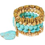 This multi-layered beaded bracelet crafted by BERYOHZ cleverly combines the vitality of turquoise blue with the warmth of natural wood, embellished with a cool metallic luster, bringing you a double visual and tactile enjoyment