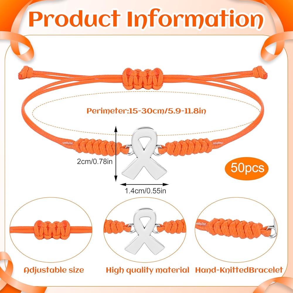 • 【Meaningful Awareness Design】Vibrant orange ribbons represent leukemia, kidney cancer, multiple sclerosis (MS), and ADHD awareness. The style of these leukemia awareness cancer rope bracelets are designed to help effectively spread awareness about leukemia. The orange ribbon charm, a universally recognized symbol for leukemia awareness, is a symbol of strength, support and honor, stand up and fight for a cure with these cancer survivor gifts.