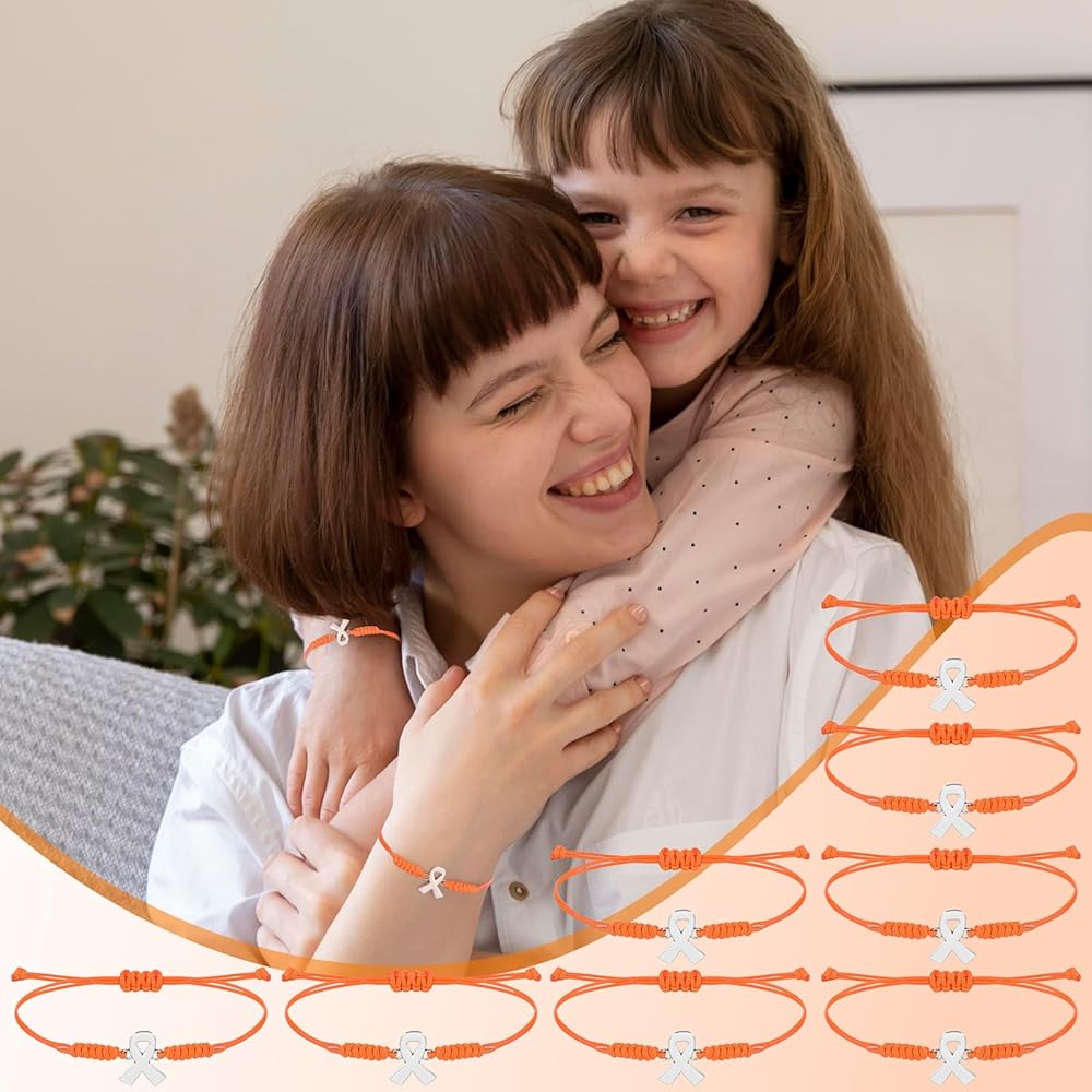 The orange ribbon unites causes including leukemia, kidney cancer, multiple sclerosis, ADHD, and self-harm prevention. These bracelets aren't just accessories – they're conversation starters, symbols of solidarity, and beacons of hope. Order today to spread awareness, show support, and inspire those battling illness with this versatile, ready-to-share bundle.