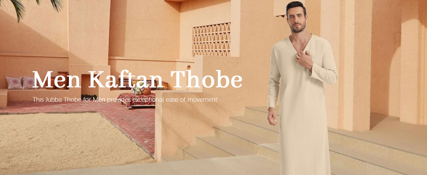 تم تصميم ثوب جوبا للرجال هذا خصيصًا للرجل العصري، ويوفر سهولة استثنائية في الحركة؛ عنصر أساسي في أي مجموعة من الملابس الإسلامية للرجال، وهو مثالي للاحتفالات الدينية والتجمعات العائلية والنزهات غير الرسمية
