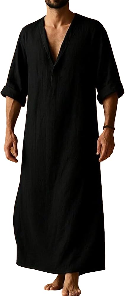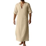 قفطان فاخر بأكمام طويلة للرجال مصنوع من قماش ناعم ومسامي لراحة فائقة أثناء الارتداء اليومي والصلاة؛ يتميز هذا القفطان الرجالي متعدد الاستخدامات بمقاس مريح وتصميم أنيق مناسب لمختلف المناسبات