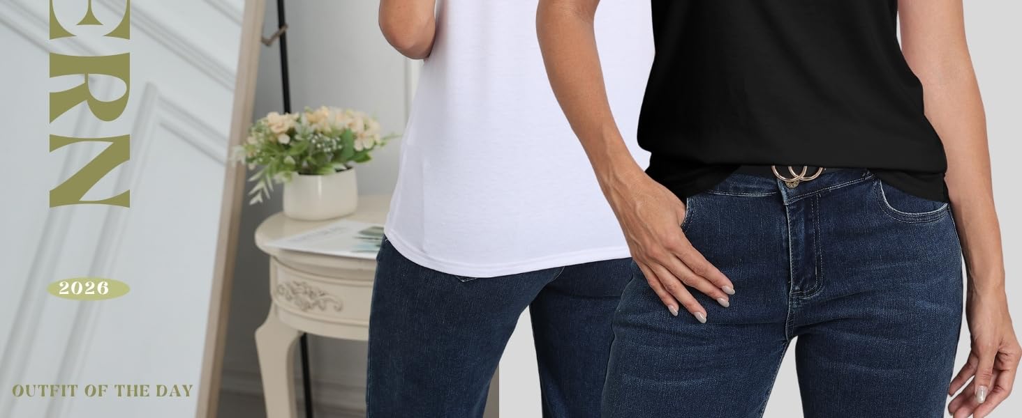 The basic casual tops are comfortable and natural to wear, with flexible swing and good draping, good sewn can reduce chafing and increase comfort. easy match with your shorts, jeans,skirt,leggings,yoga pants or cargo pants. Or layered under your coats, jackets for another style.