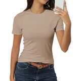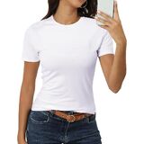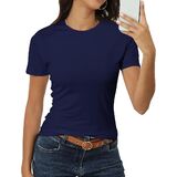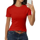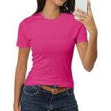 Features: Crewneck, Classic-Fit, Short Sleeve Fitted Shirt, Casual Basic Tee Shirts, Solid Color Shirts,Summer Basic Stretchy Fitted Tops for Women.Buttery soft like a cloud,classic crewneck design highlights your body curves, can make you look slim and charming.