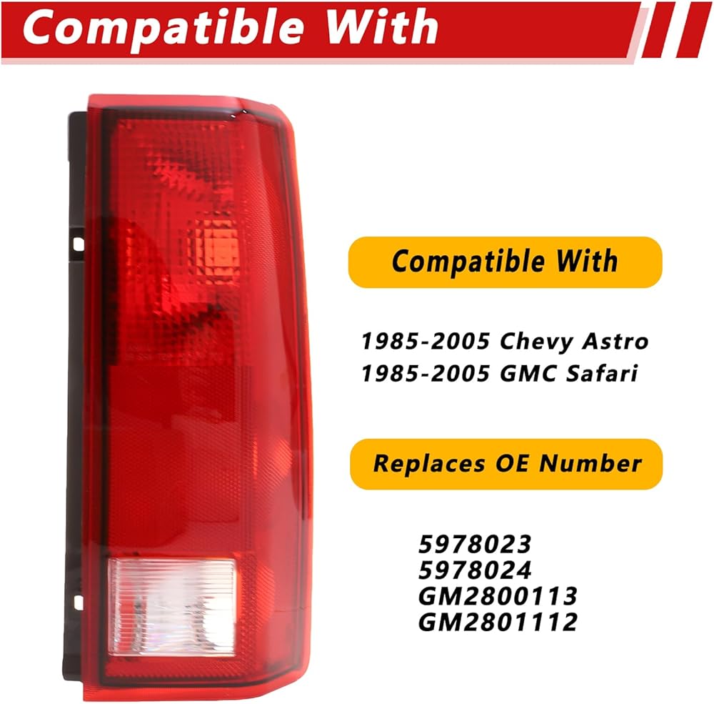 Tail Light Assembly Compatible With 1985-2005 Chevy Astro/GMC Safari Driver and Passenger Side Rear Lamps Pair GM2800113 GM2801112 | 5978023 5978024