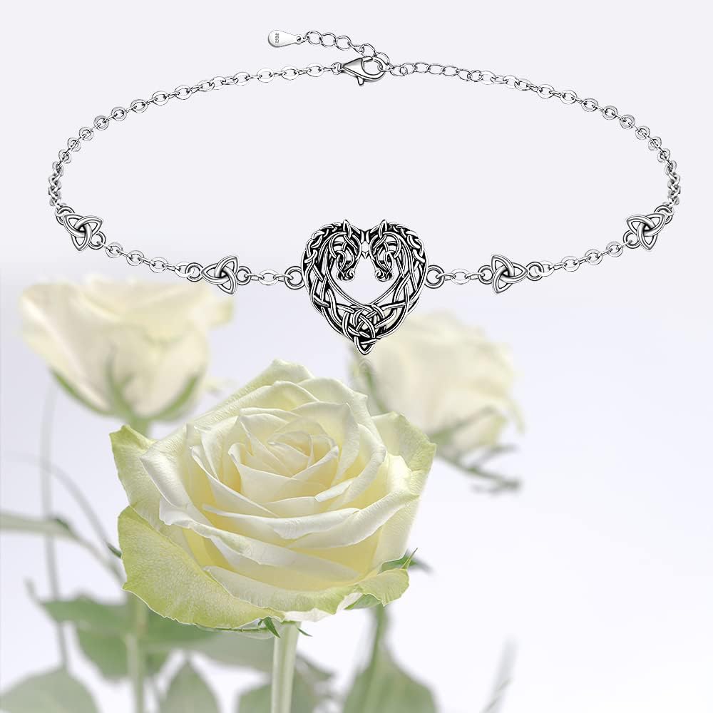 【HORSES JEWELRY FOR COUPLES】The adorable horse bracelet features 2 horses woven by Celtic knot, Celtic knots represent eternity and never ending, the horse represents lucky, royalty and trust. The ideal gifts for couples,who enjoy outdoors, love Celtic culture, as Valentine's Day gifts, Christmas gifts, Birthday gift.