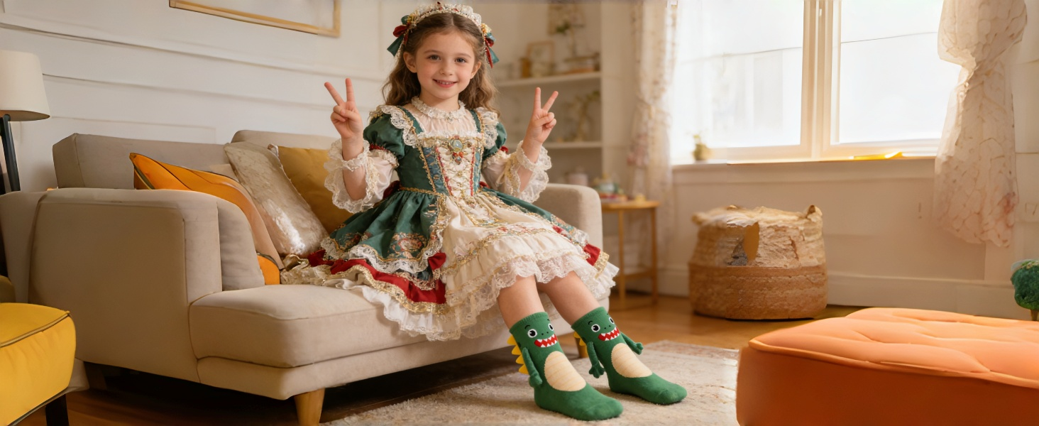 Dinosaur Design with Back Spikes – Adorable green dinosaur face on the front plus fun back spikes for extra 3D detail, making these silly socks stand out from every angle.