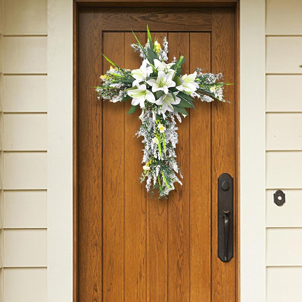 Easter Liliaceous Cross Wreath Garland Front Door Ornament