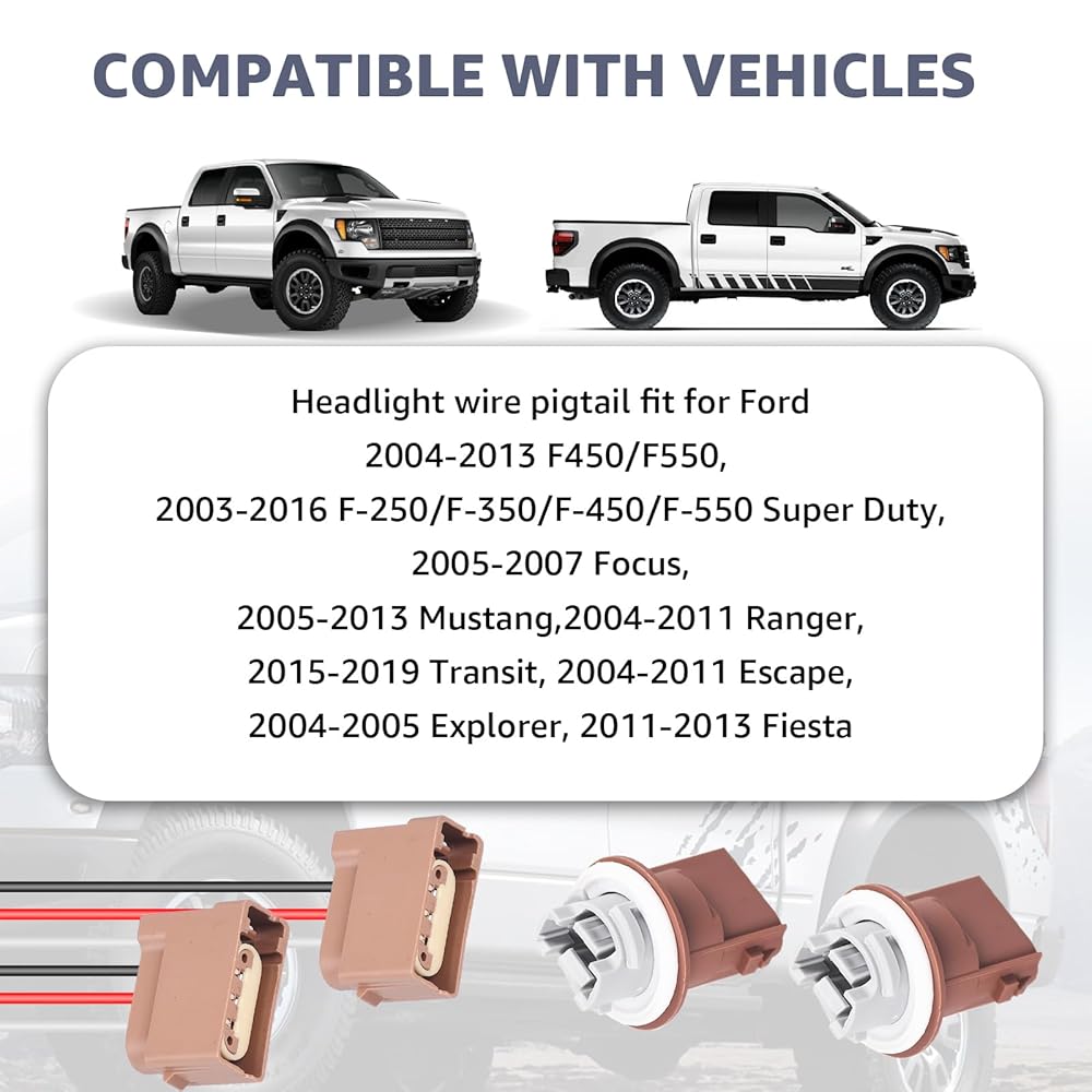 Compatibility:Turn Signal socket with harness Compatible with Ford 2004-2013 F450 F550, 2003-2016 F-250 F-350 F-450 F-550 Super Duty, 2005-2007 Focus, 2005-2013 Mustang, 2015-2019 Transit,2004-2011 Ranger,2004-2011 Escape, 2004-2005 Explorer, 2011-2013 Fiesta