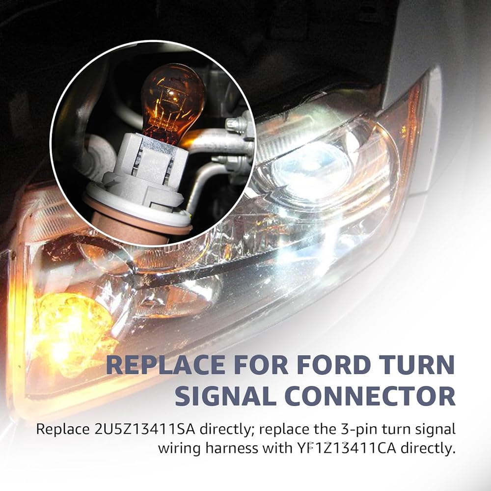 Fit Model:Replacement for Ford turn light connector 2U5Z13411SA and 3-pin turn signal harness YF1Z13411CA