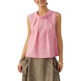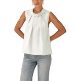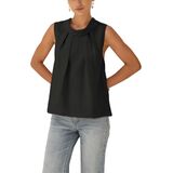 - This womens tank top features stand-up collar, front pleated details, back lattice, button design, sleeveless silhouette, pull on closure