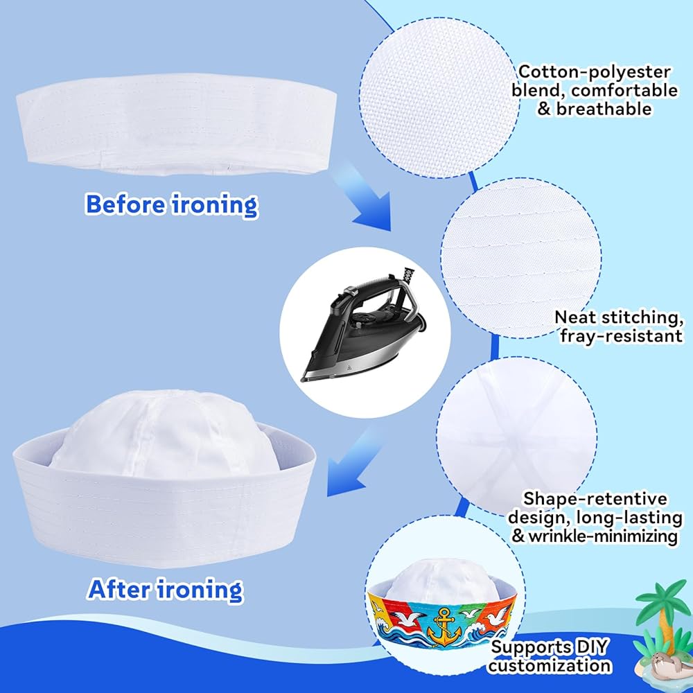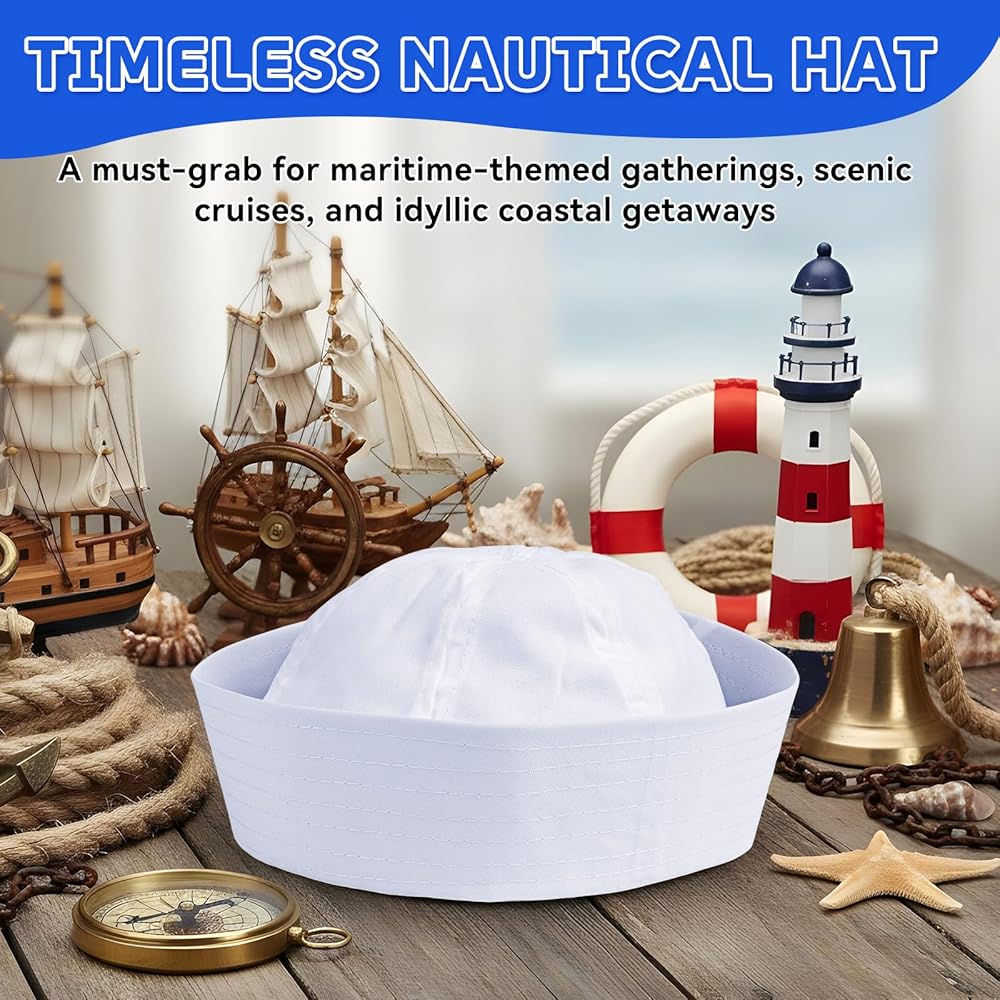 Premium Material: This sailor hat is crafted from a high-quality blend of cotton and polyester, exquisitely crafted with meticulous attention to detail. Featuring reinforced stitching and a sturdy brim, it maintains its structured shape and crisp silhouette even after repeated use.