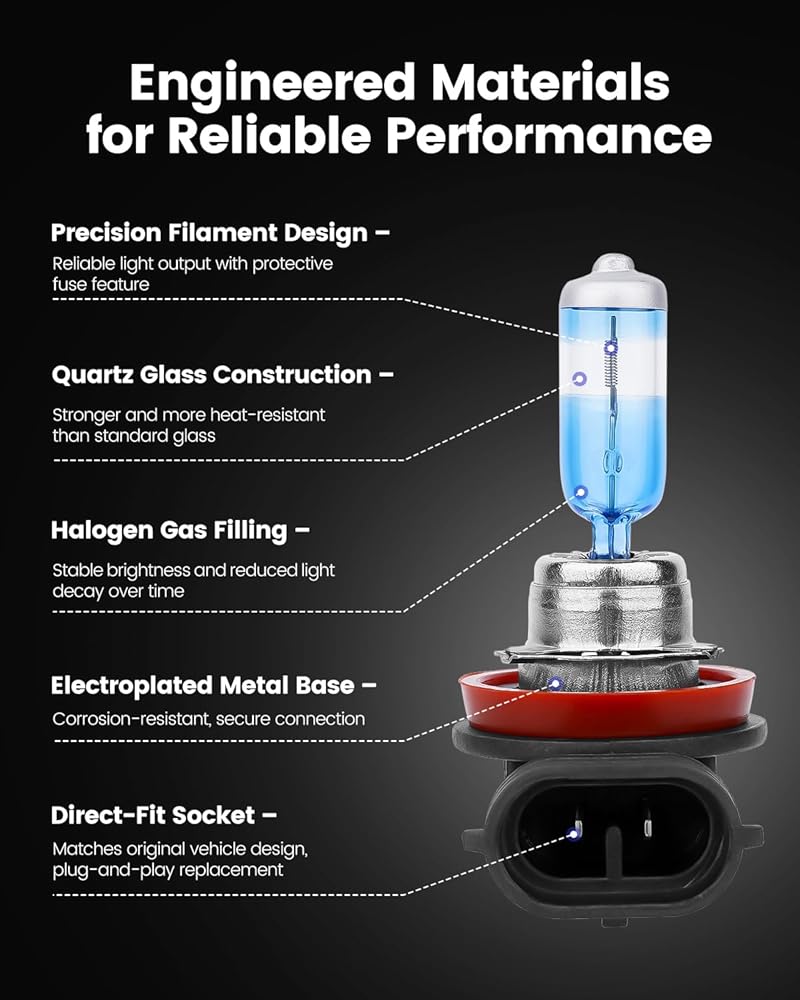 Reliable Construction – Quartz glass tube and high-temperature coated tip support heat resistance and consistent performance. Filled with halogen gas and built with a protective filament design for dependable illumination. Fitment Note: In some cases, bulb type/size may vary by trim level and optional equipment—even within the same year/make/model. We recommend confirming bulb type/size by position in your owner's manual or on the original bulb(s) before purchase.Need help? Message us.