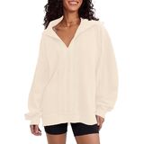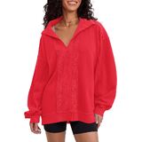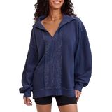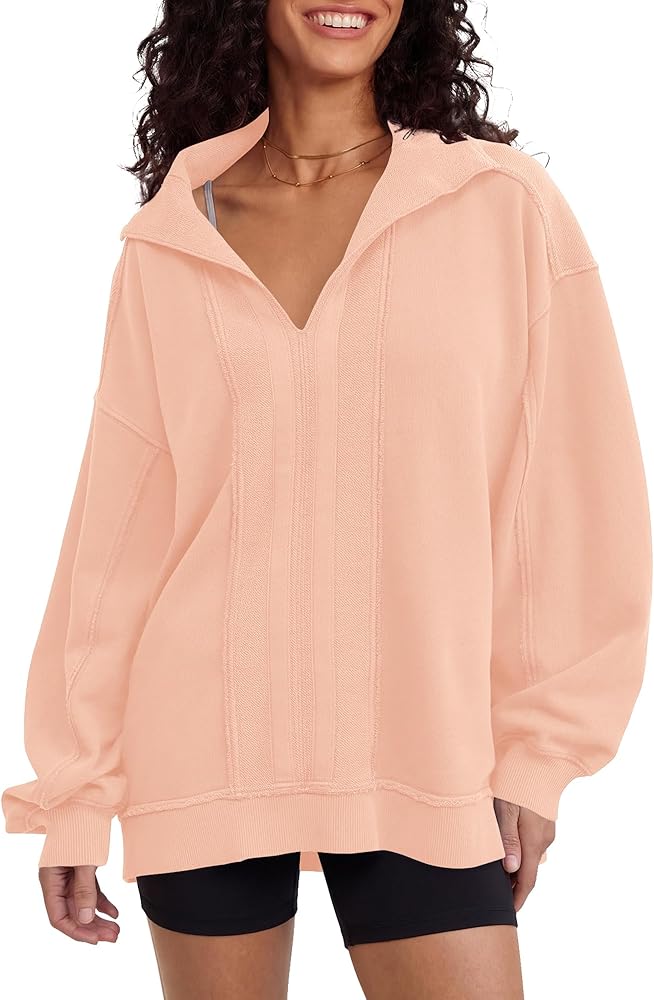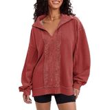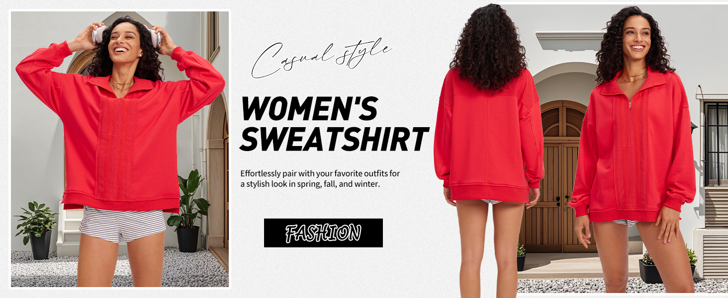 Trendy Design: Oversized pullover sweatshirt, off the shoulder long sleeves, ribbed hem and cuffs, fabric reversal design on the front placket and upper part of the back makes a statement