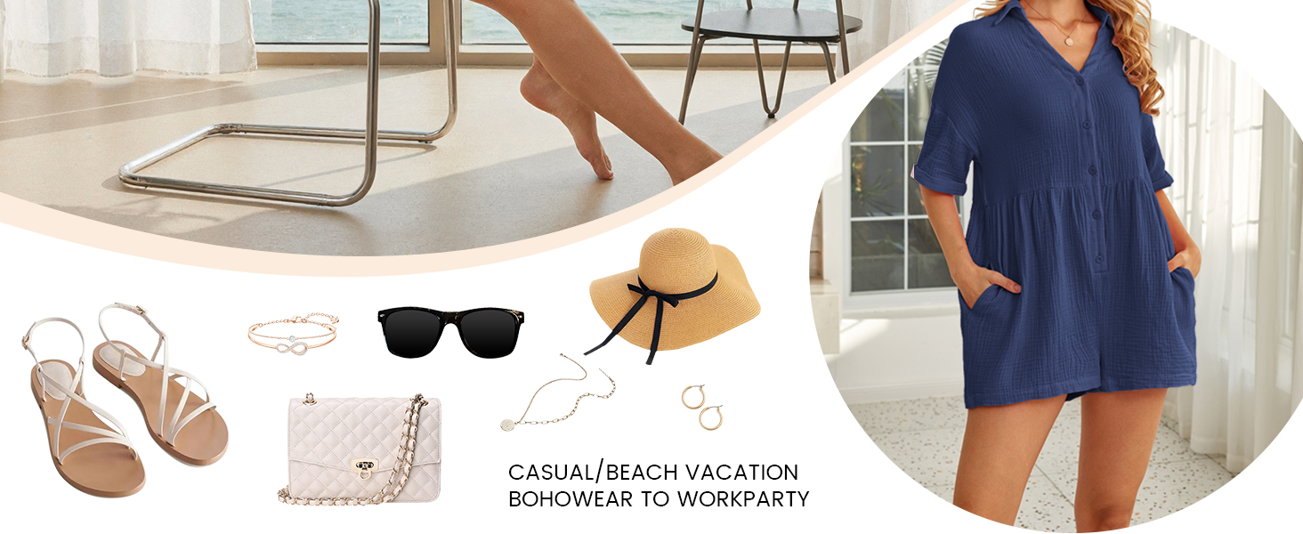 [Material}: The summer rompers for women are made of cotton. High-quality, super soft, and comfortable fabric.light weight and breathable, very loose and comfortable to wear all day.