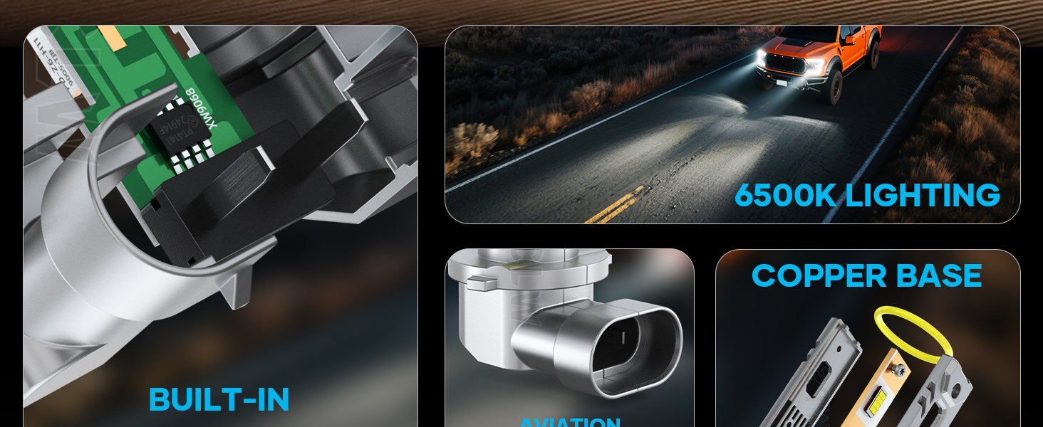 【Quick Plug & Play Installation】Features a direct replacement design with built-in intelligent IC drivers. No wiring modifications or CANBUS adapters needed for most vehicles. Simply plug in and secure—installation takes just 5-10 minutes. (Note: Allow bulbs to cool before handling and wear gloves during installation.)