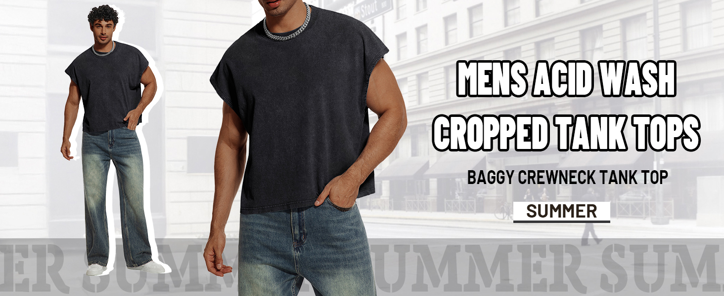 Material: This mens cropped tank top is made of soft, lightweight, and breathable acid-wash cotton, ensuring all-day comfort