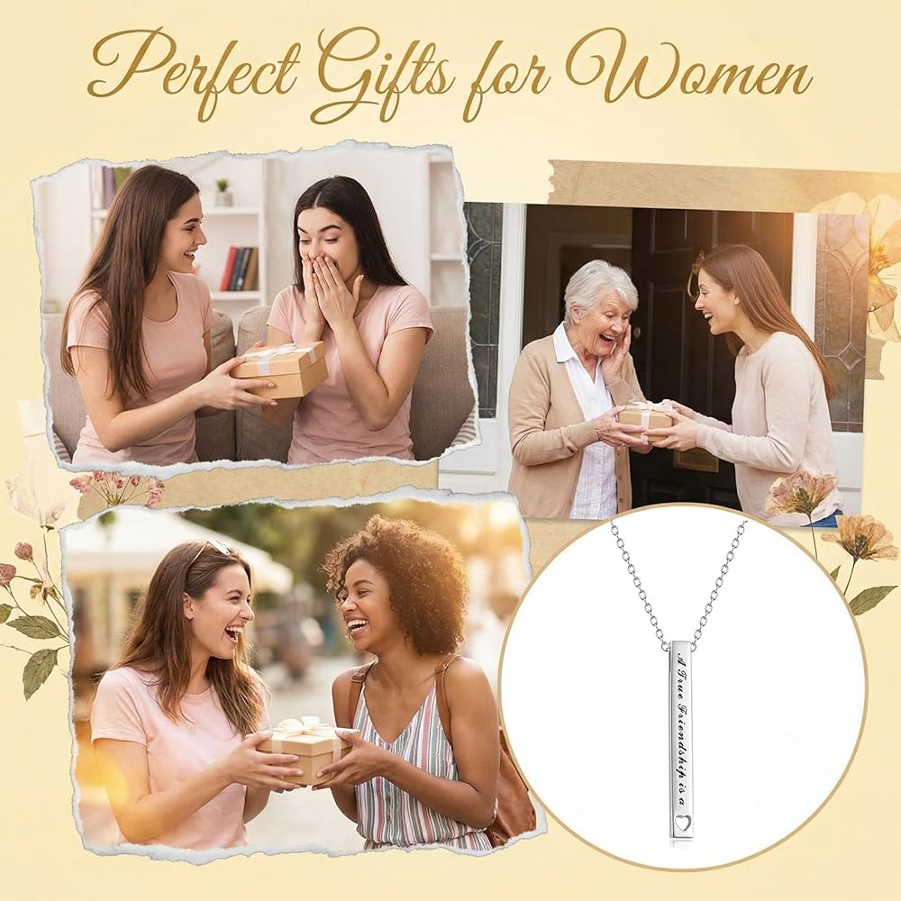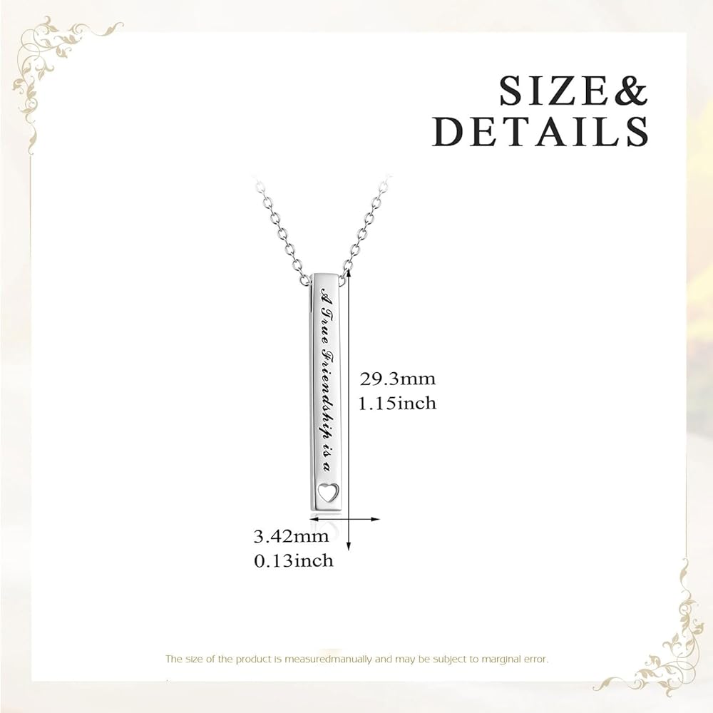 • ❤【Eternal Friendship】 Vertical bar friendship necklace with friendship messages engraved, A true friendship is a journey without an end to tell your friend that you attach great importance to the friendship between you two.