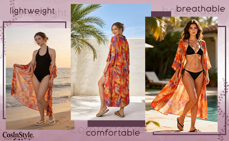 100% Premium Viscose: The Silk-Like Cooling Touch. Experience the luxury of natural wood-pulp derived fiber. Our kimono cardigans offer a silky-smooth texture and elegant drape that surpasses common polyester. It's ultra-breathable and skin-friendly, providing a natural cooling effect even in humid tropical climates.