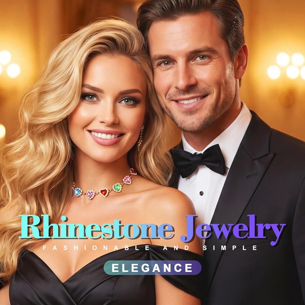 - Multicolor party jewelry made of high-quality rhinestones and gold-plated metal, anti-tarnish for long-lasting use.