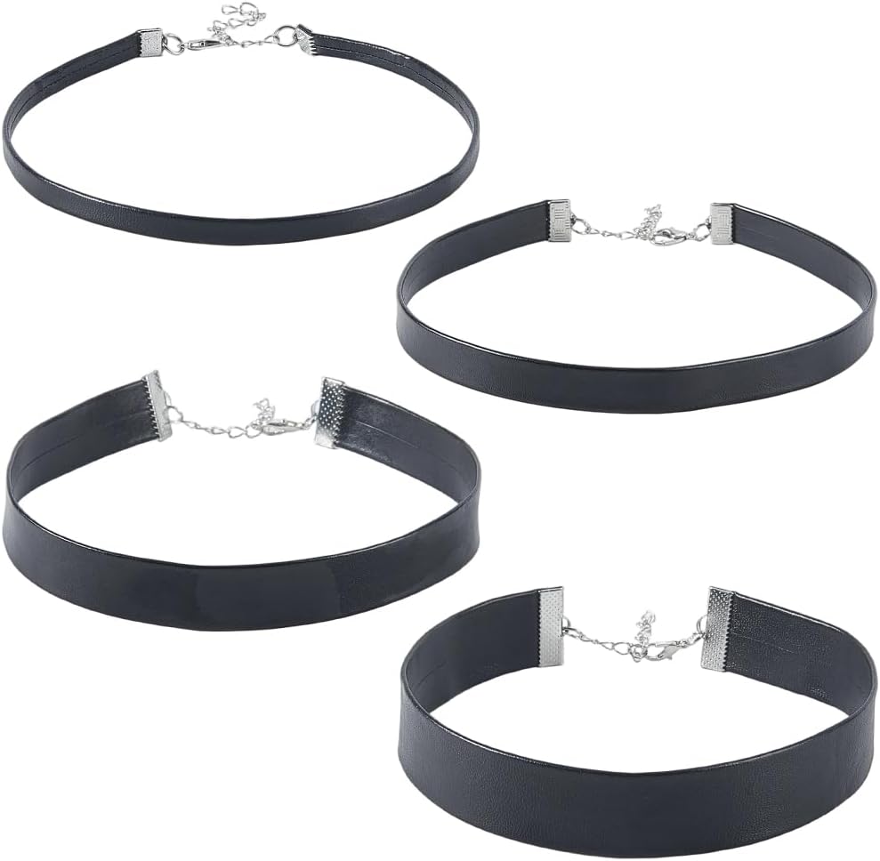 4 Sizes 4PCS PU Leather Choker Necklace for Women Black Gothic Punk Leather Layering Collars Adjustable Neckband with Extender Chains for Costume Jewelry Halloween Party