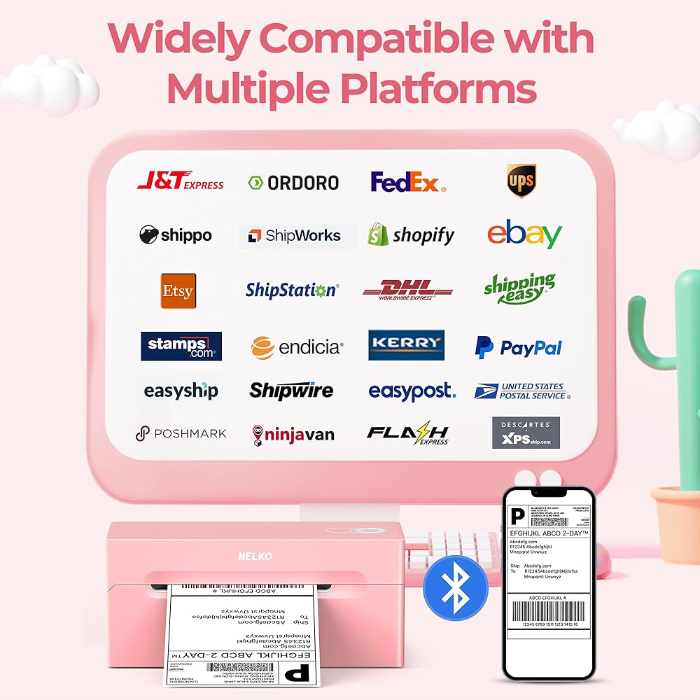 Go Wireless with Bluetooth: Connect your Nelko Bluetooth thermal label printer to iOS 13 or later and Android devices via the "NELKO" app. Windows 7 or later users can also print wirelessly via Bluetooth. For Mac users with M1 or M2 CPUs, install the app and connect via Bluetooth. Note: All devices must connect through the app and cannot pair directly via Bluetooth settings