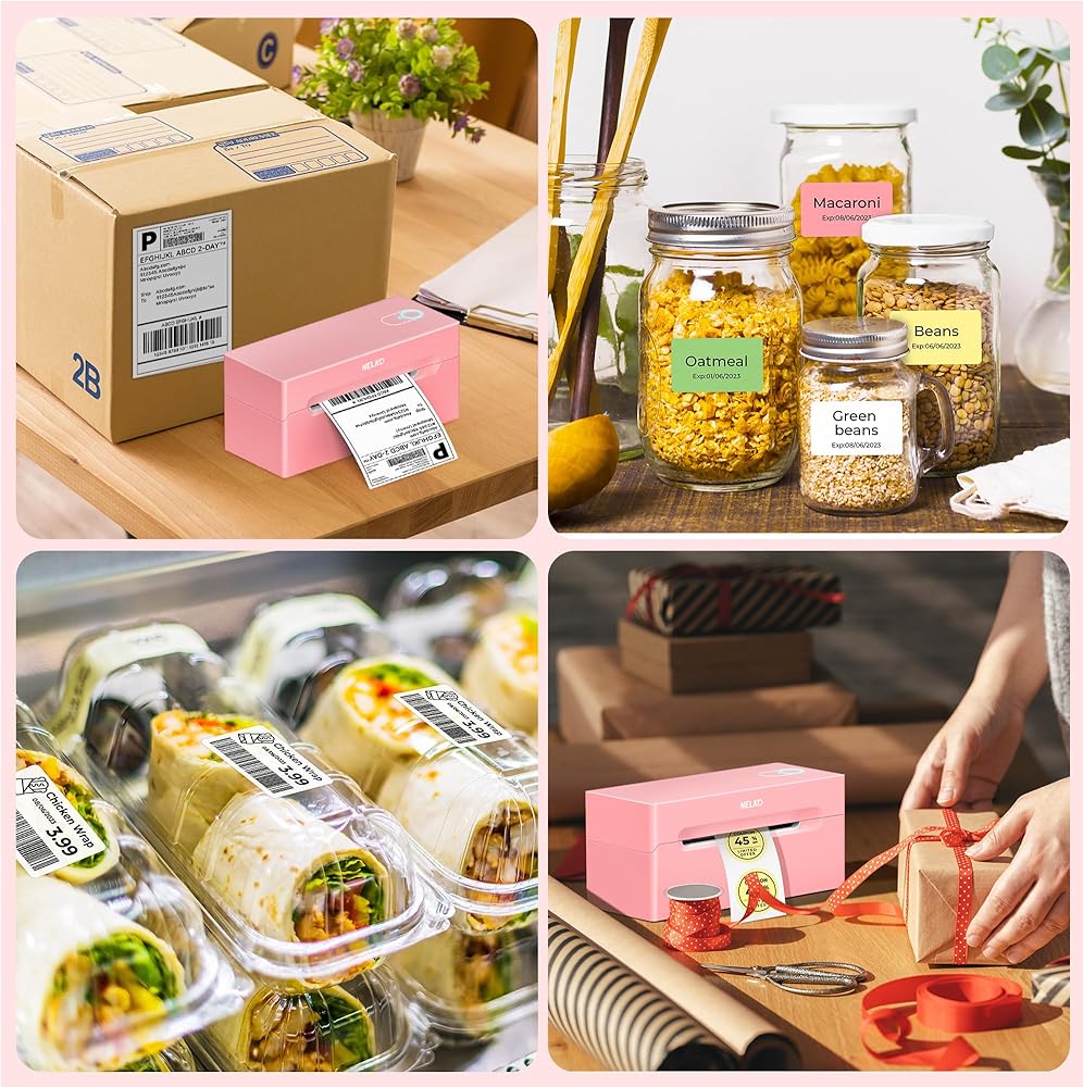 Wide Application Range, Meets Diverse Printing Needs: Efficiently prints shipping labels for e-commerce, warehouse management tags, product price stickers, and classroom teaching labels (suitable for teacher supplies). Supports labels 1.57"-4.1" wide (both fanfold and roll types), with flexible design of text, barcodes, and QR codes. This thermal label printer fits both home and business scenarios