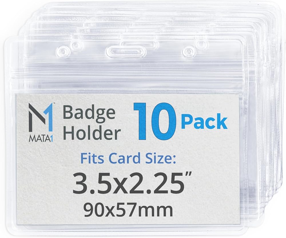 Mata1-USA Plastic Card Holder (Clear, 3.5x2.25 Inch, 10 Pack), Horizontal Badge Holder for ID Name Badge with Zipper