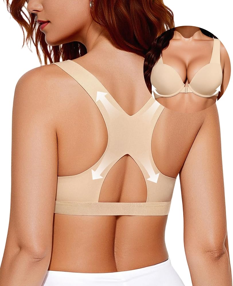 Experience ultimate lift and comfort with the Upushall Push Up Bra. Featuring a convenient front closure for easy wear, smooth seamless cups, and a flattering smoothing racerback can relieve the pressure on the body and offer a extra back support, this T-shirt bra delivers significant cleavage enhancement (up to 2 cup sizes) while remaining invisible under clothing. Enjoy all-day support and a beautifully shaped silhouette.