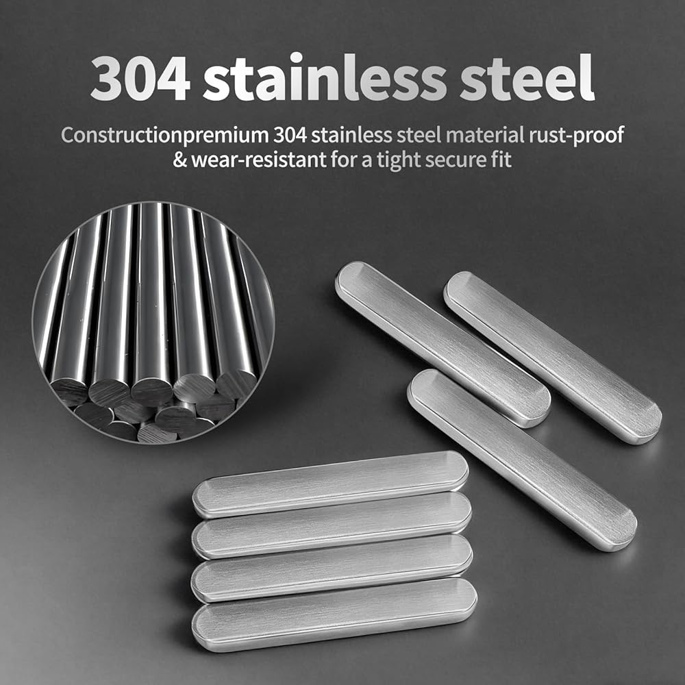 High-Quality & Durable Construction: These jackshaft sprocket keys are crafted from sturdy 304 stainless steel, offering excellent rust and corrosion resistance. the heat-treated material ensures reliability across a wide temperature range while maintaining superior strength. each key features a precision flat edge and a protective coated finish for smooth operation and long-lasting performance