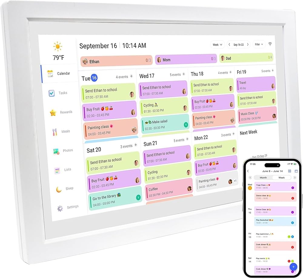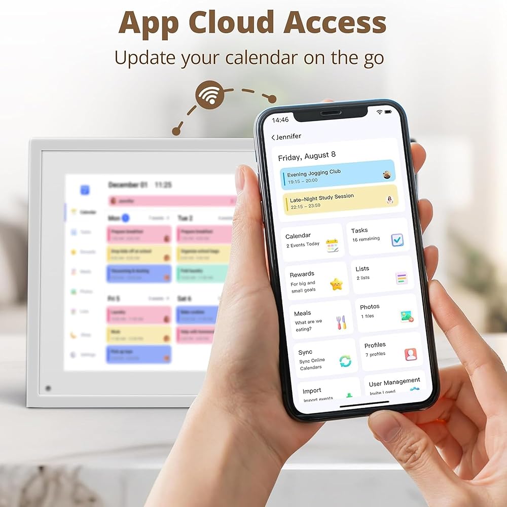 All-in-One Smart Family Calendar - Keep your entire household perfectly synchronized. Assign colors to each member, manage events, chores, and lists on a single, intuitive 10.1 Inch HD touchscreen - no more missed appointments or messy paper planners.