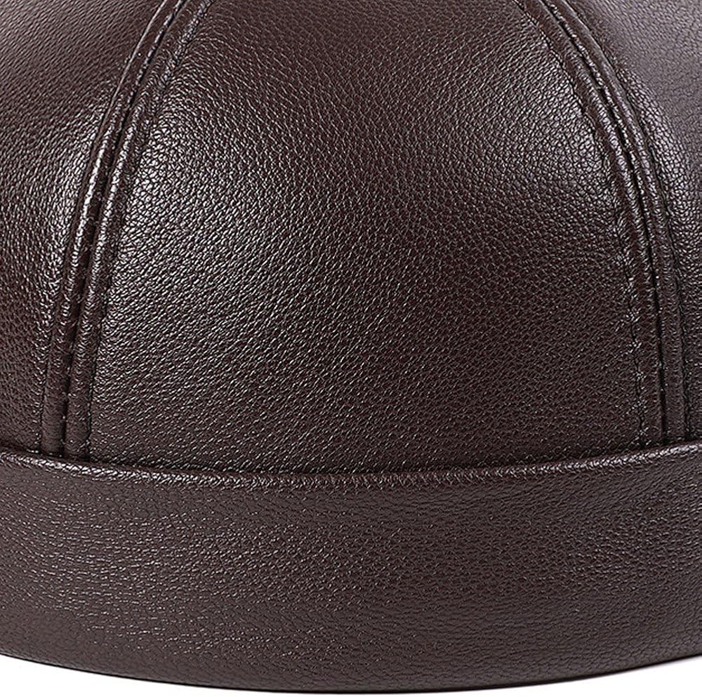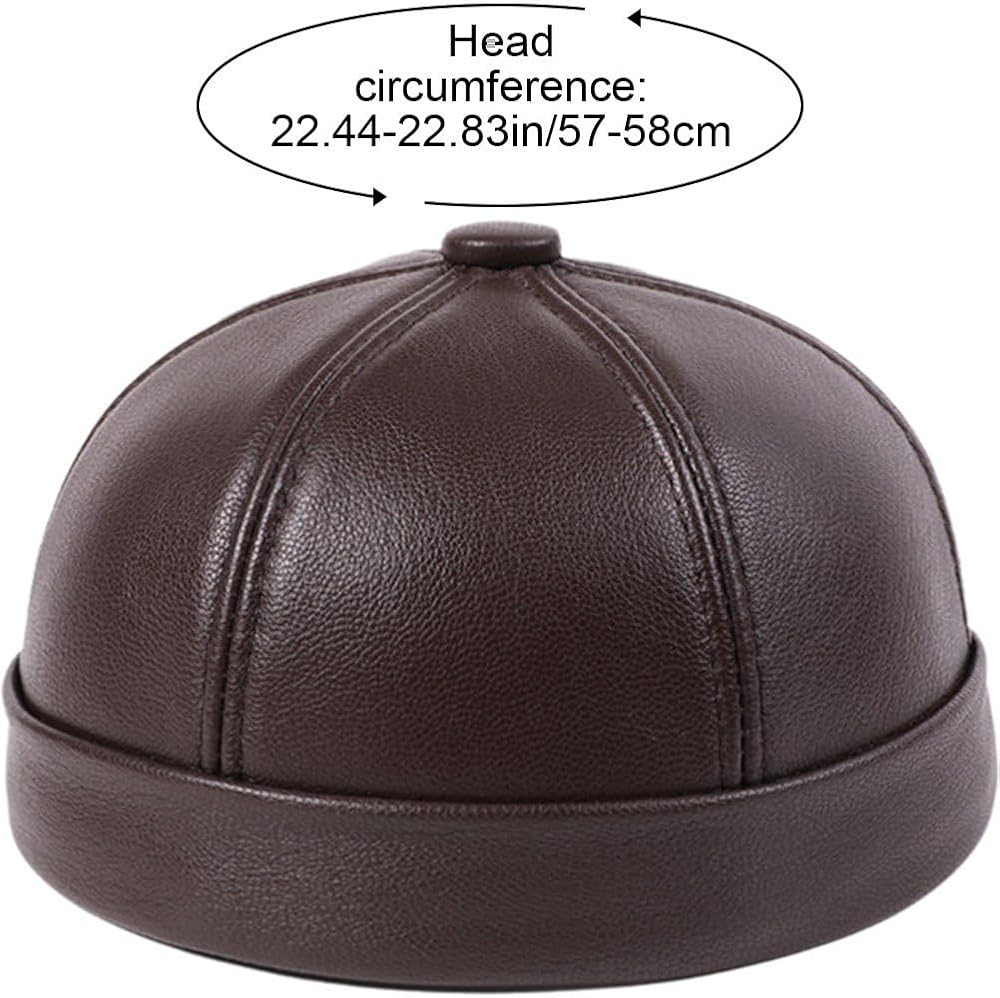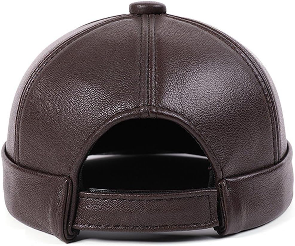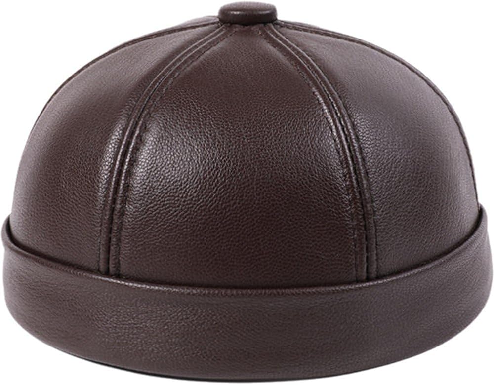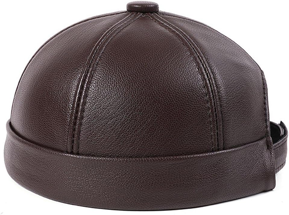 Real Leather Retro Hat Men's Leather Skullcap Rolled Cuff Brimless Caps Thin Round Caps Sheepskin Cap for Men