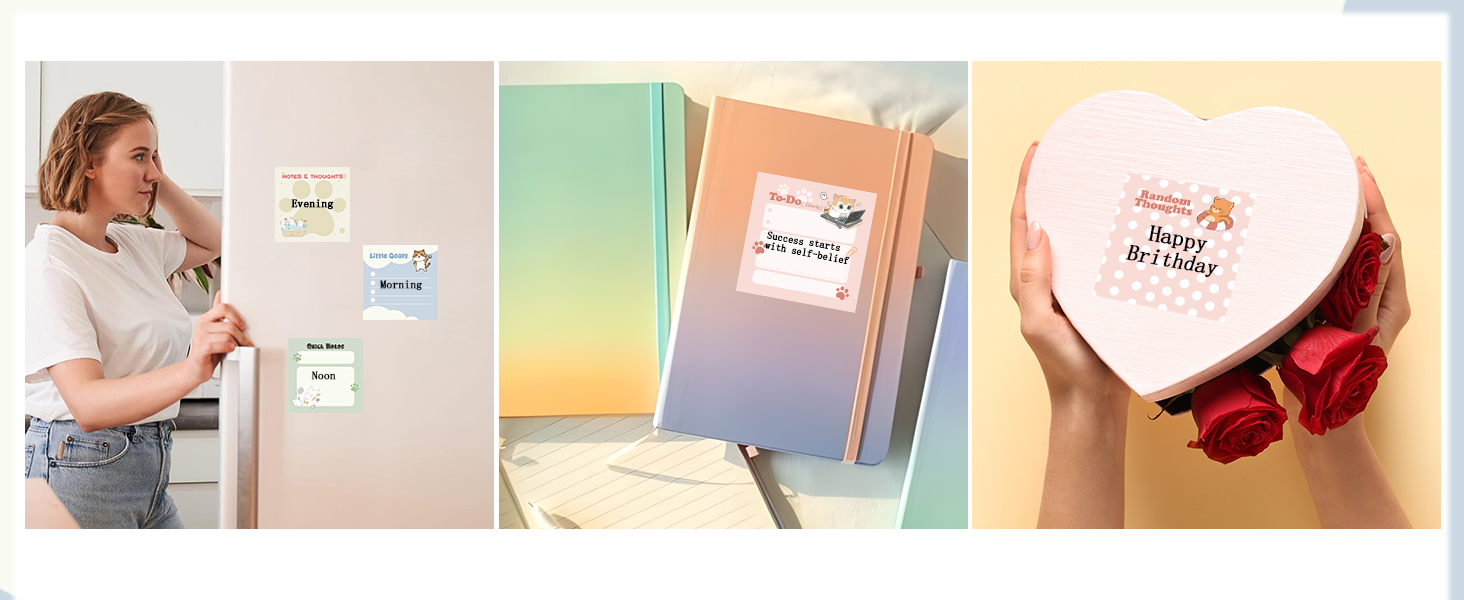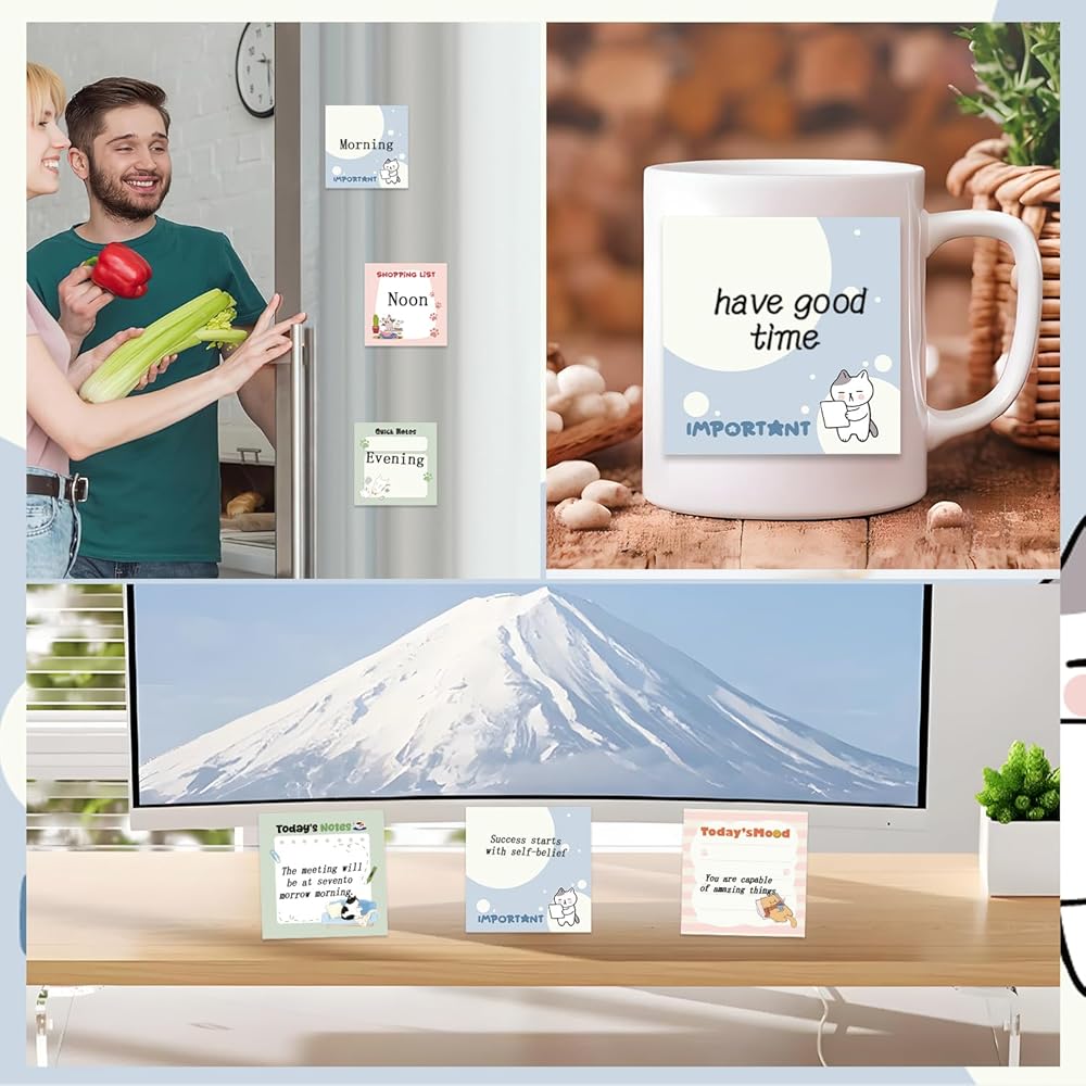 Easy To Use: The 3x3 inch size is portable and fits easily in bags or pockets, making them convenient for on-the-go reminders. They stick securely to various surfaces for quick lists or messages in daily tasks