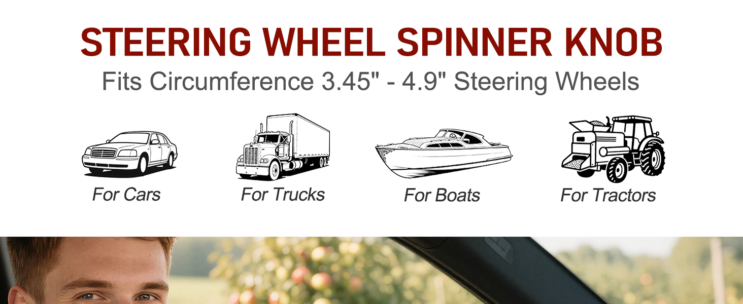 【Heavy-Duty Performance】 Engineered for commercial and heavy-use environments, this truck steering wheel knob performs reliably on semi trucks, tractors, lawn mowers, and marine steering systems. It is also perfectly suitable as a steering wheel spinner for daily cars, SUVs, it provides smooth control for both work and everyday driving.