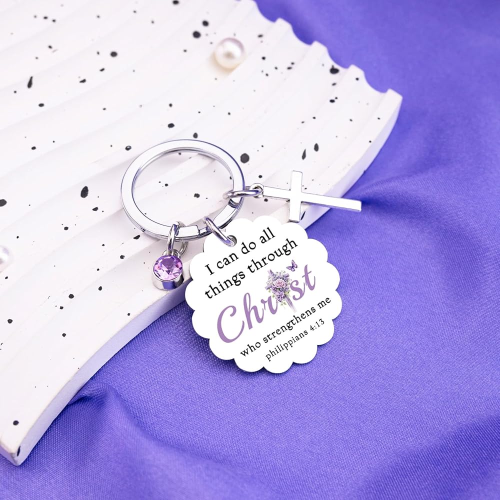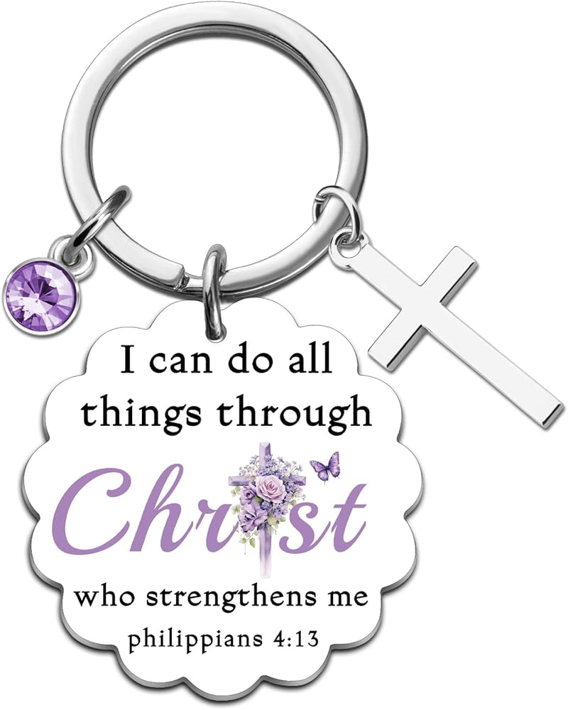 Infuse her day with divine strength and courage. This keychain serves as a portable source of inspiration, reminding her that with Christ, she can confidently face any obstacle, from daily stresses to life's greatest trials, anchored in the powerful promise of Philippians 4:13.