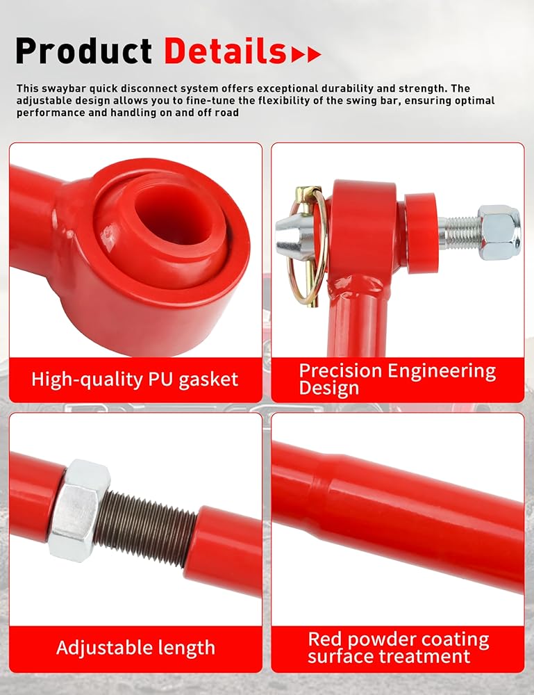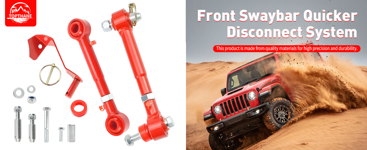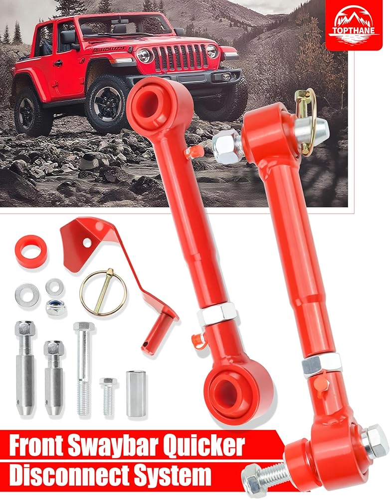 Quick-release/disconnect mechanism enhances suspension free travel: Utilizes quick-pin or removable-pin mechanisms to disconnect the sway bar during off-road driving, enabling greater axial articulation.