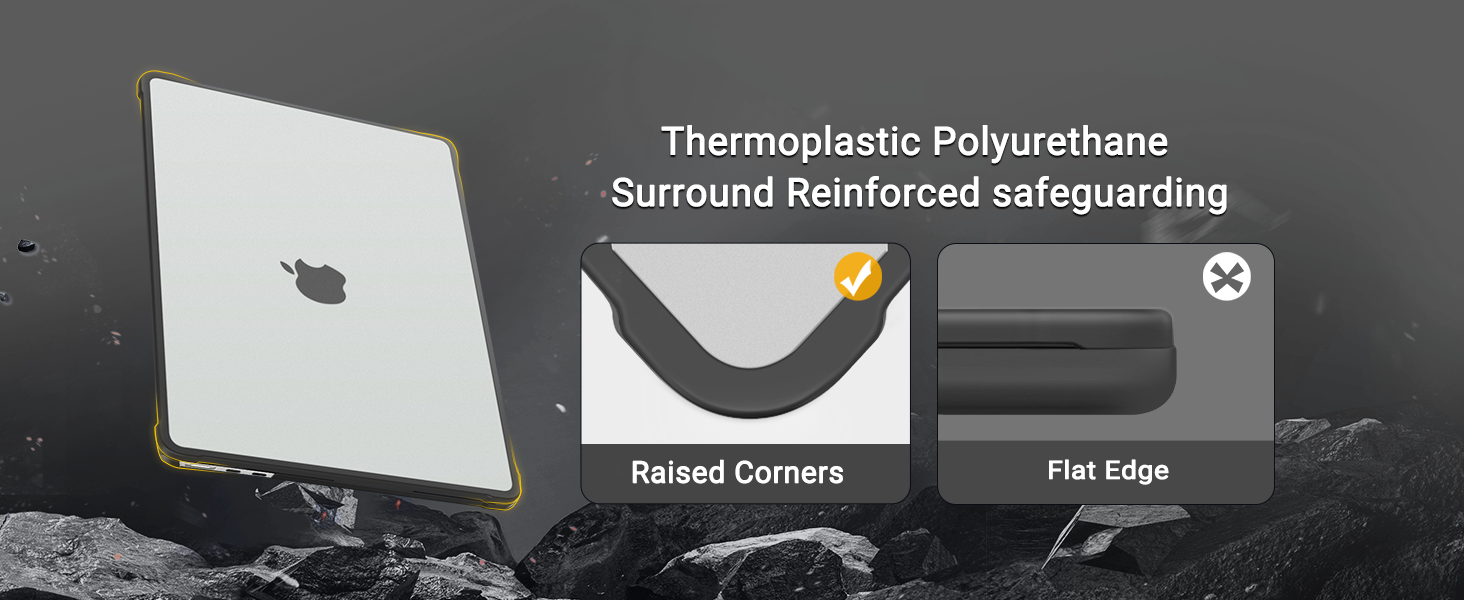 Reinforced TPU Guard Defense: Featuring reinforced TPU (Thermoplastic Polyurethane) protective surround guards your laptop everyday. Engineering for a perfectly flush and uninterrupted closure. The polycarbonate case and TPU surround are engineered to be scratches-resistant, ensuring consistent beauty