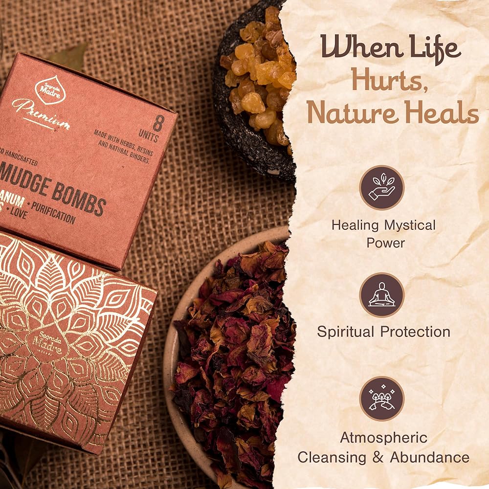 SAGE YOUR WAY TO SERENITY: Bless your space with our sustainably sourced incense smudge bombs containing premium olibanum and rose which together, offers a powerful tool for spiritual cleansing. It's an aromatic cleansing practice, contributing to a healthier living environment.