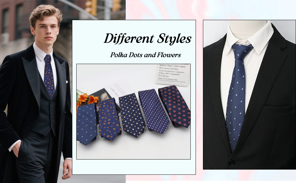 Eye Catching Design: These mens ties are based on navy blue with different patterns ( polka dots and flowers ) on the surface; Dark colored floral ties for men are fit for fall and winter, adding an atmosphere to the cool season