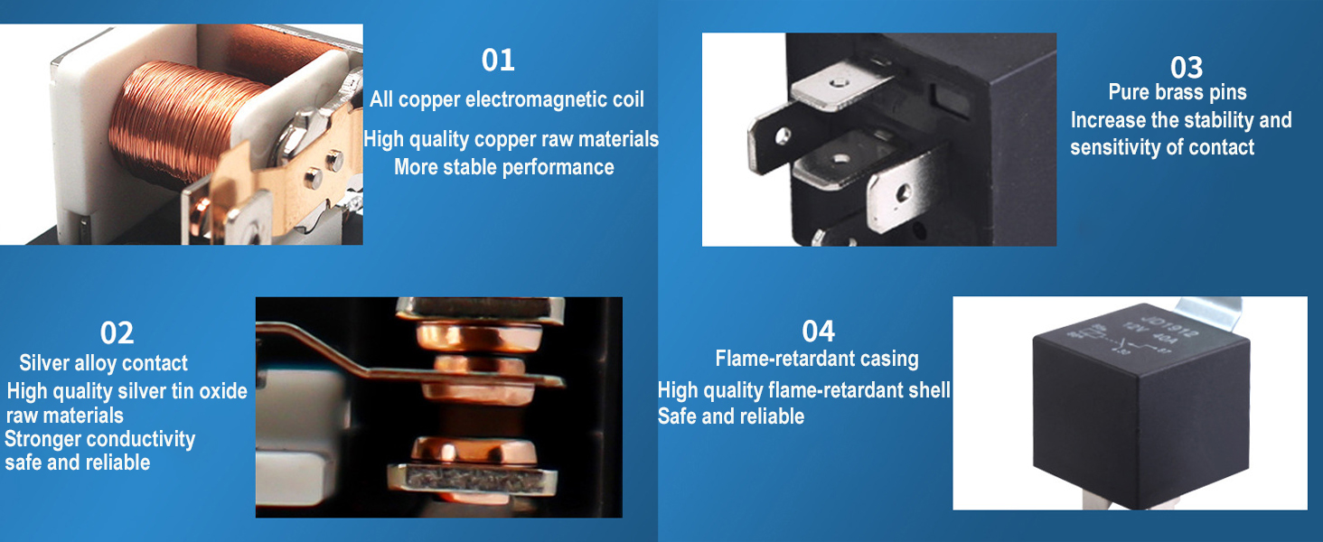 【Superior Quality】automotive relay adopts pure copper core cable, silver alloy contact, strong conductivity, better stability, relay kit is made of high-grade flame retardant material to ensure safe use and long service life.