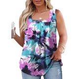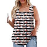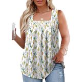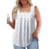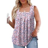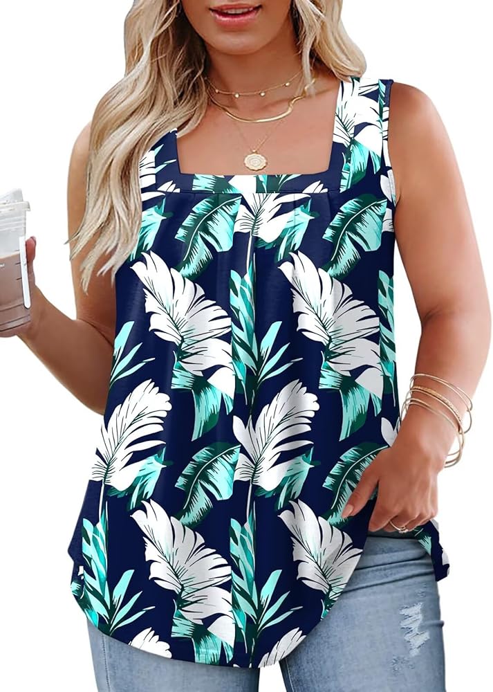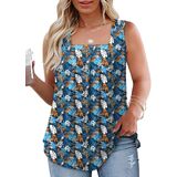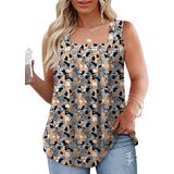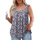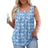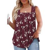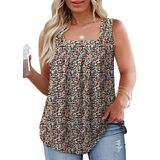 Womens plus size sleeveless shirts feature classic square neck with cute pleat in front detail and cool, cozy sleeveless design, solid and floral color, curved hem, loose fit, simple and versatile.