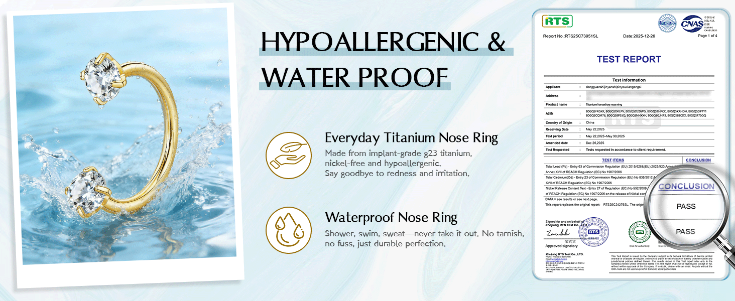 Hypoallergenic Titanium Horseshoe Nose Ring: This horseshoe nose ring is made from implant grade titanium (G23), a premium titanium nose ring material that's completely hypoallergenic and safe for sensitive skin—a better choice than surgical steel. Free from nickel and lead, this body jewelry won't irritate new piercings, making it ideal for septum rings, nostril, helix, tragus, daith, rook, and cartilage piercings