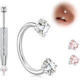 Nose Ring Grabber Tool, 4 CZ (2 Clear + 2 Pink) Included: We make changing your jewelry easy. This half hoop nose ring comes with a free nose ring grabber tool (pliers) to help you swap ends securely without dropping them. You get 4 CZ ends total: 2 clear (pre-installed) and 2 pink (extra), all 2.5mm, giving you instant style options to match your mood or outfit