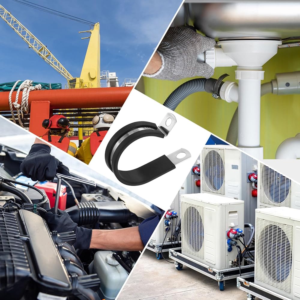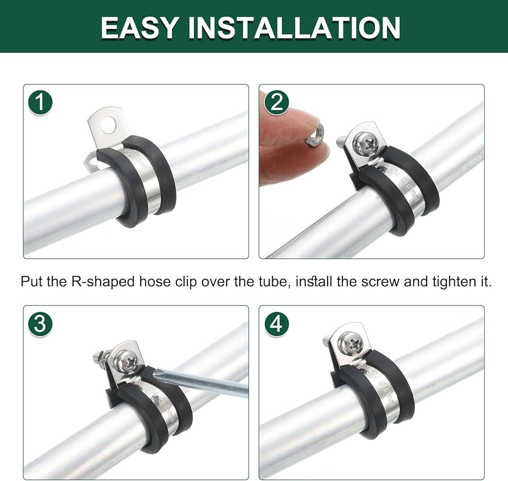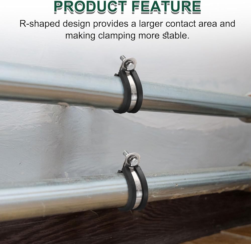 • Feature - The R-shaped design fits the shape of circular pipes and cables, providing a larger contact area and making clamping more stable. The pipe clamp is also easier and faster to install, allowing for quick and easy fixation operations.