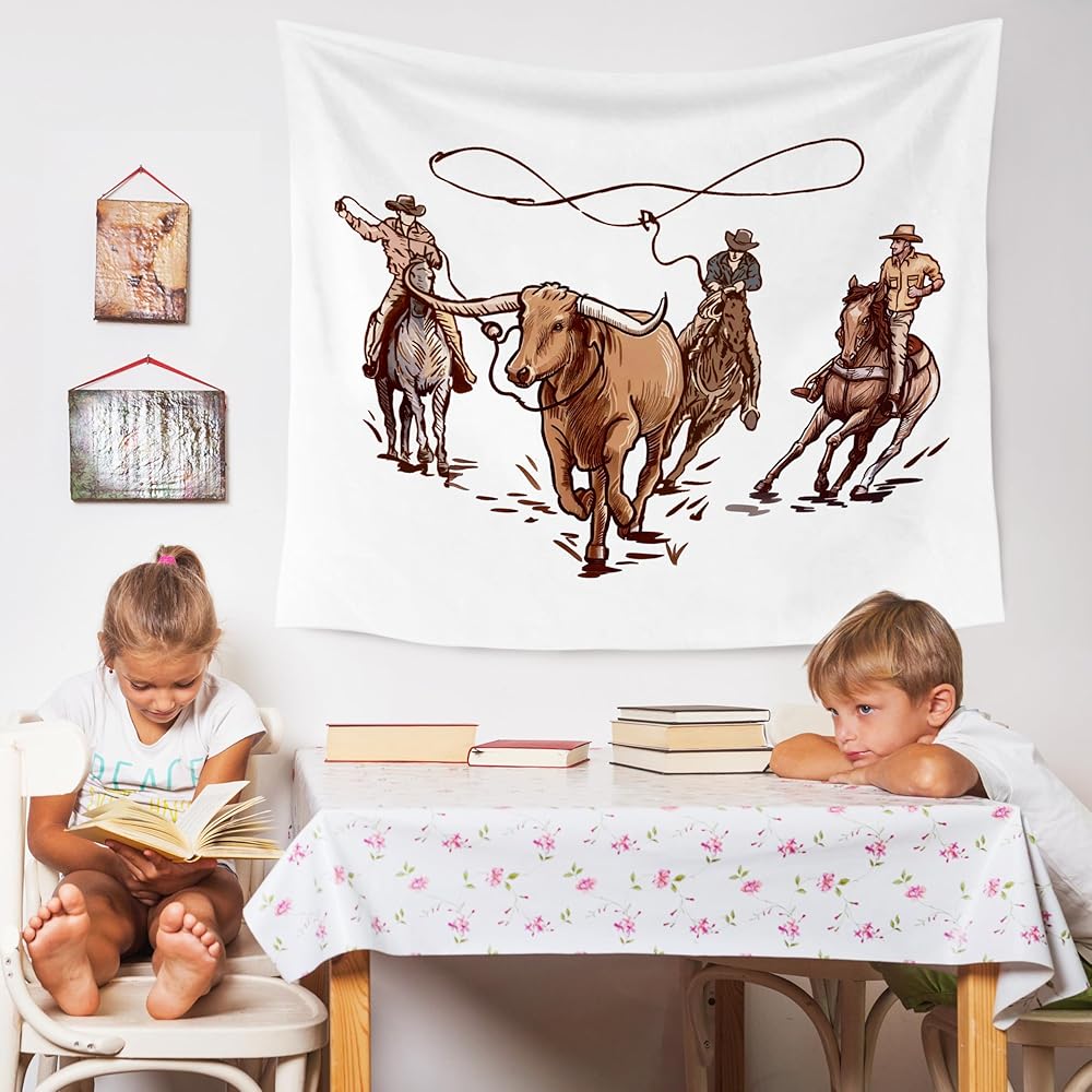 WARDOS Western Cowboy Tapestry, Country Rodeo Cowboy Lasso Bull Tapestry Wall Hanging, Vintage Farmhouse Wild Western Wall Blanket Decor for Home Living Room Boys Bedroom, 50x60 Inch
