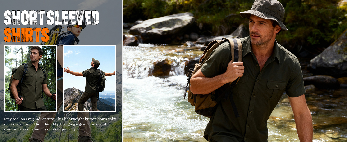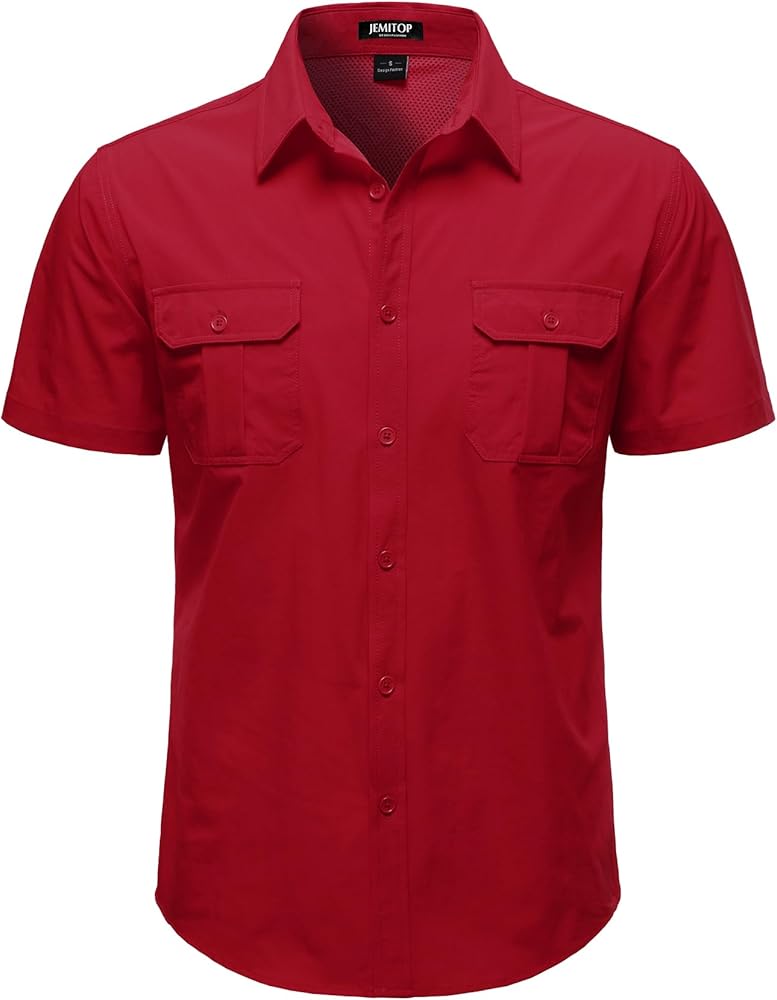 Breathability : This short sleeve button down shirt features a mesh-lined back panel with a vented design, promoting effective airflow and rapid moisture dissipation to keep you cool and dry during activity